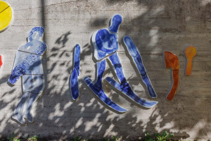 Marta Federici: My Heritage is a composition of painted ceramic elements, which extends over a 34-meter long wall. The work was inaugurated in the square of San Sebastiano in Limone Piemonte last September and takes inspiration from a local story, featuring six women as protagonists: the skiers Elisabetta Astegiano, Elisabetta Bellone, Margherita and Franca Bottero, Anna and Caterina Tosello. When they began their careers in the 1950s, these sportswomen, still very young, had to measure themselves against a society that was still deeply male and sexist–the second wave of feminist movements had yet to take hold. It’s a complex historical phase, during which Italian women–after having taken part in the Resistance against Nazi-fascism and having acquired the right to vote–were pushed back within the walls of the home, once again destined to domestic work and family care. In parallel to the economic boom, between 1959 and 1965, more than one million women lost their jobs–these figures are impressive. Le Cavallette (the “Grasshoppers,” as the six skiers from Limone Piemonte were nicknamed) could not participate in the 1958 World Championships or in the 1960 Olympics because the FISI (Italian Winter Sports Federation) preferred to invest the available funds to support the male team. Their career experienced the bias of an unjust system, and still, the young women decided to confront it, in order to pursue their dreams. Your project celebrates their courage and their memory, while developing a broad reflection that touches on many themes, such as climate change, the connection between bodies and territories, desire, the construction of narratives. I would like to start our conversation by asking you about your relationship with the local area, and about how it was for you to engage with the community of Limone Piemonte. How did your initial intuitions for this project evolve after the encounter with the place?