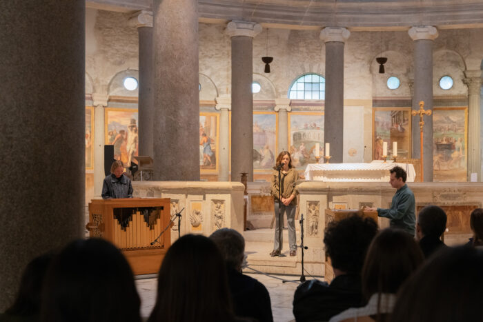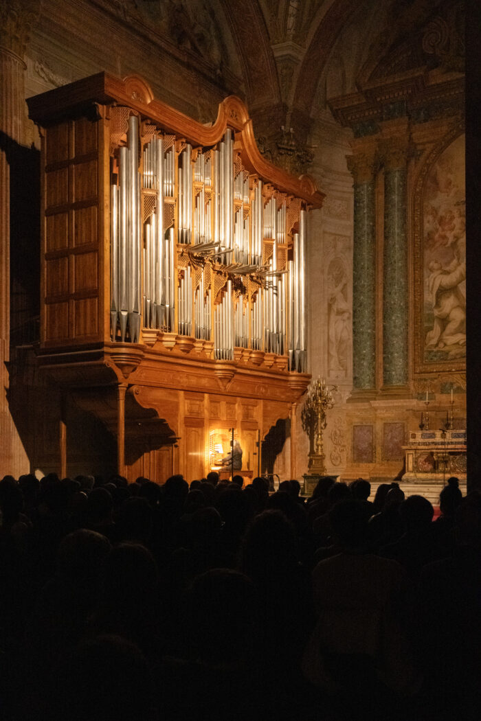Described as a sonic pilgrimage in the year of the Catholic Church’s Jubilee, the festival unfolds in three chapters, each articulating a distinct relationship between the pipe organ, by far the oldest of all keyboard instruments, [2] and contemporary compositions. Here, the pilgrimage is not understood as a devotional act, but as a practice of spatial and temporal displacement; an invitation to move through sound to negotiate one’s relation to the present. If aesthetic evolutions respond to historical, political, and social transformations, the recent renewed presence of contemporary organ music in church spaces reflects the contemporary urge to find new forms of bliss, spirituality and closeness in a time marked by systemic collapse and extensive destruction. In the ritualistic search, sites of worship are reframed, cease to appear as static monuments, and emerge, on the contrary, as vibrant infrastructures; concert halls in which the social dimension of the musical experience is modulated by Organum Multiplum’s call to gather together and tune on new affective tones.