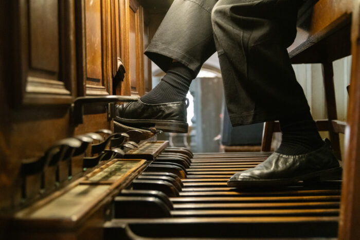 Within Organum Multiplum, the organ is reactivated as a historical machine whose religious and cultural meanings coexist with experimental approaches to sound. Organ music is marked not only by symbolic significance rooted in its liturgical history and its capacity to elevate listeners toward the divine, but also by a distinctive spatial dimension: its monumental scale has always been inseparable from the architectural structures that host it. Physically embedded into the very skeleton of churches, organs are not simply instruments to be played but environments to be inhabited. Surrounded by its intricate machinery of keys, pedals, pipes, and ranks, the organists play the instrument from within, rather than addressing it as an external object. Their performative presence is consequently absorbed by its monumental scale, resisting the kind of visual spectacularization that has characterized musical performances for more than two centuries, from the virtuoso figures of the Romantic era to the contemporary pop stars. Here, there is no frontal stage, no hierarchies of attention, no separation.