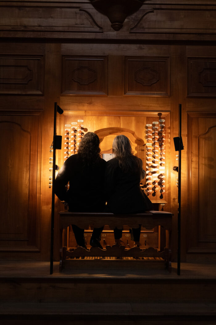 In Kali Malone’s performance, experimental reinterpretations of ancient polyphonic methods and historical tuning systems become portals to alternative perceptions of harmony. As tones accumulate and interact within architectural space, the music shapes a heightened state of attention in which structure, duration, and material vibration guide the listener toward introspective, contemplative, and deeply embodied modes of listening. Owing to the organ’s unusual position, these approaches are complemented by the subtle movements of the performers interacting with the instrument and by the collateral sounds—the pulling and pushing of stop knobs, the striking of pedals, the coupling of ranks—which, becoming audible, foreground the material presence of an instrument so often associated with ethereality.