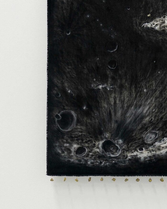 Alessandra Franetovich: Your solo exhibition, presented in Rome at Galleria Cantadora, already suggests through its title, Permanently Shadowed, a sense of abandonment and forgetting—one that calls for a position to be taken. What is cast into shadow are the imperial and colonial methods through which forms of power have constructed, and continue to construct, worldviews, producing hegemonic narratives and a persistent confusion between reality and representation. By acknowledging the dissonance between simplified narratives and the complexity of lived experience, your reflection unfolds within an imaginary shaped by apparent contrasts. The present resurfaces through a past era, the nineteenth century, in the encounter between two environments located at extreme distances from one another: the lunar surface and the subterranean depths of the Earth. Both are experienced and interpreted through nineteenth-century historical narratives: on the one hand, underground Jerusalem; on the other, early scientific images of the Moon. You thus stage a transtemporal and, at the same time, intergalactic scenario, yet one that is contained within a confined space—a single room. Where does this need to bring together such distant elements within a limited spatial setting come from?