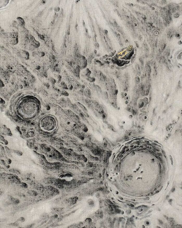 Some years ago, I incorporated the Moon into this movement. It functions as an imaginary surface of projection upon which imperial ambitions have been cast and which today returns to the center of a new race, this time for extractivist interests. The West constituted the Moon as a field of study and representation, producing a visual repertoire in which, by being mapped and named, it became simultaneously distant and near.