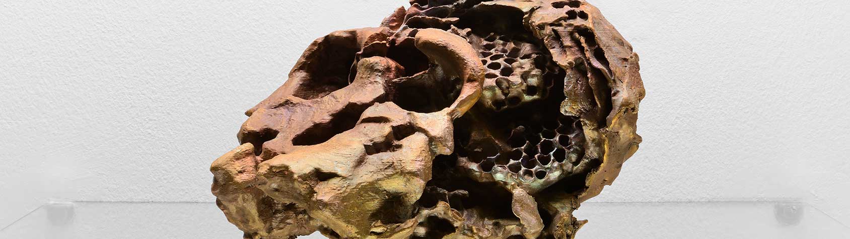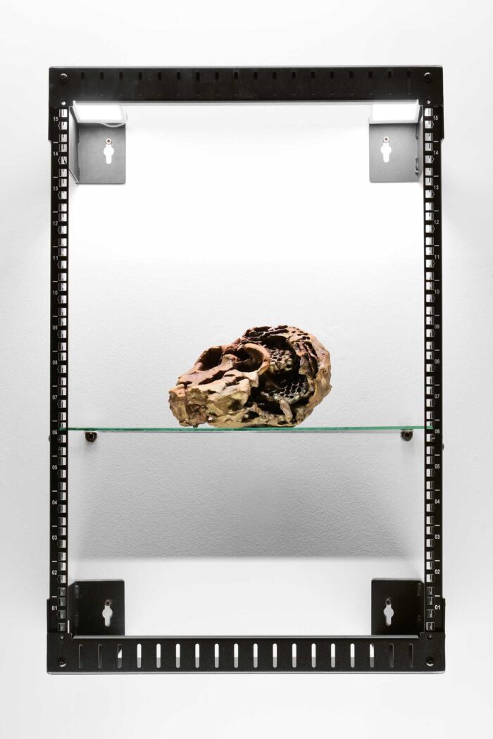 I am interested in thinking of the skull as the ruin of a container that once held cognitive activity, much like a wasp nest functions as the material echo of interactions within the hive. In this way, the skull and the nest enter into dialogue: both condense the relationship between fragment and whole, between individual and collective; they differ, yet also complement each other within a hybrid form that opens up a series of questions through its own ambiguity.