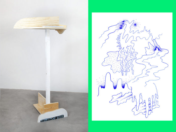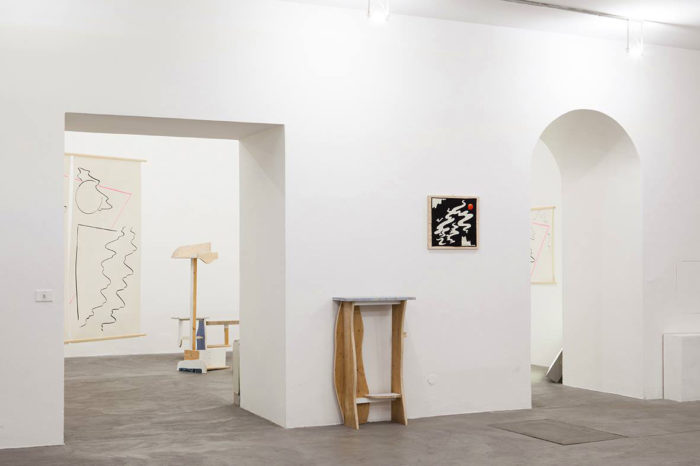 Virginia Genta presents the visual work that has accompanied her musical career for years, and Canedicoda creates a new series of site specific Mochini, i.e. collages of wood and marble forming seats, stools and benches. A selection of graphic works, silkscreen printings, drawings, posters and tapestries interacts with the Mochini. Loose objects reside throughout the space, glancing at the delicate and organic depictions on the walls. The drawings hold their place and communicate with the plastic and material representations, creating analogies in both directions.