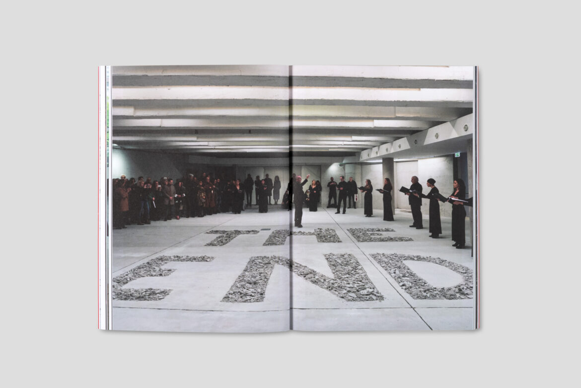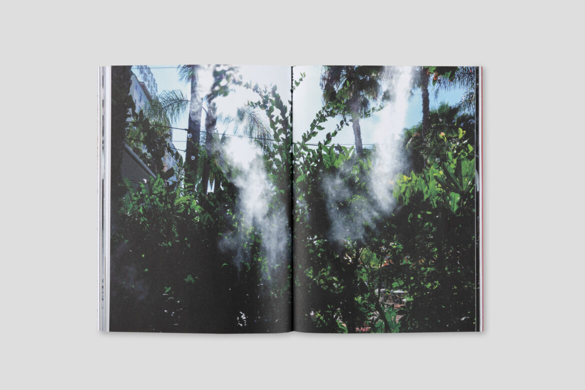 From discreet gestures to large-scale productions, collaborative and monumental works; from the glow of a solitary sphere atop a Los Angeles hotel—lit when Golia was in town, dark when he wasn’t—to a plane slicing through the sky, dragging behind a banner that promises, or threatens, “The best is yet to come,” the artist’s gestures unfold like strange celebrations. Fireworks burst. Marching bands appear, then vanish. A monumental staircase, the longest in Los Angeles, suspended at its extremities, rises and leads nowhere. The images and text gathered in this book compose a narrative account of Golia’s practice—a constellation of spectacle and poetry, teetering on the edge of the absurd and the sublime.
