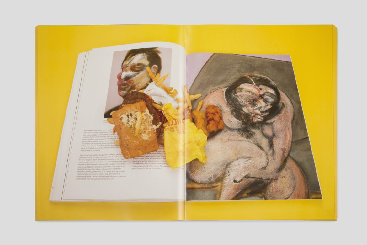 What’s the relationship between art and fast food? It may sound an uneven juxtaposition, but that’s exactly what this irreverent book by Marc Horowitz deals with. The artist has photographed each page of a catalog by Phillips, the famous auction house in New York, having placed the residues of junk food on the pages. A paradoxical critique to art as market, or a tongue-in-cheek homage to pop culture, commercial advertising, and its fetishes.