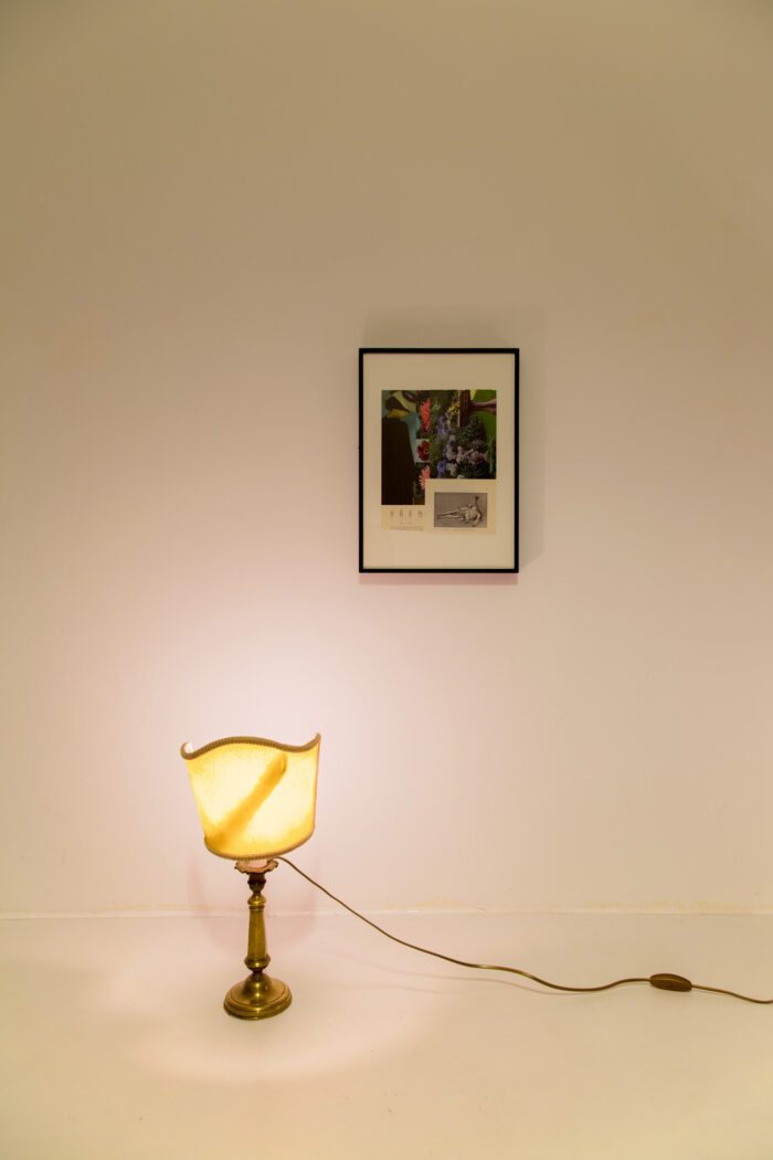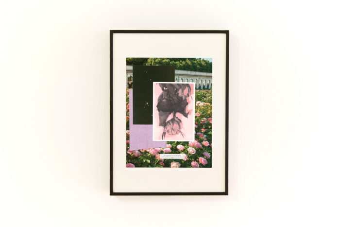 For the exhibition, you created a series of collages destined to deteriorate over time through contact with glass, eventually revealing fragments of personal memory. The familiar image is initially hidden, entrusted to the title, and only through waiting can it re-emerge. The titles are dedication-descriptions that refer to your mother’s wedding and her private life. Why did you feel the need to withdraw these memories from view? The idea of loss seems to be an active process rather than a merely nostalgic one. What do you think?