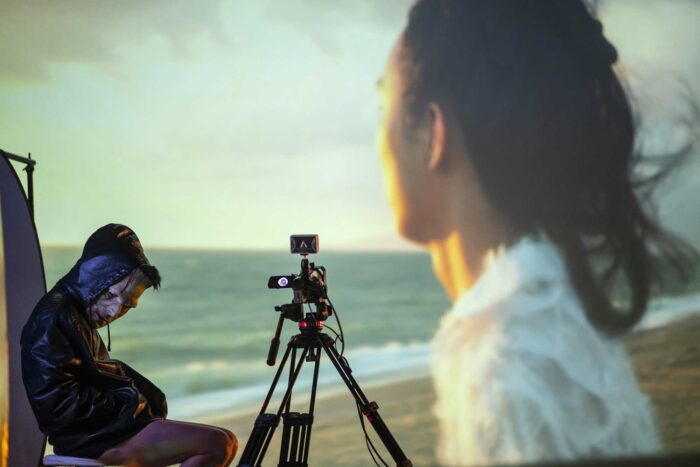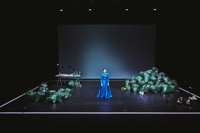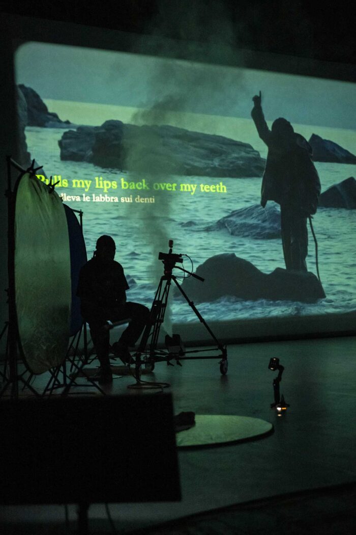 Motus’s show overflows with words, images, and objects that provoke anxiety and terror—sensations too familiar to be dismissed as merely dystopian. In a scene of the projected movie, Dr. Frankenstein (Silvia Calderoni) traverses the desolate Calabrian landscape, scattered with unfinished concrete structures. She drags a suitcase so light it must be empty. Why she does so, we don’t know. A beautiful and pitiful human being, who cries and screams with a force almost unbearable for such a fragile body. She seems to say: at all costs, one must be heard.