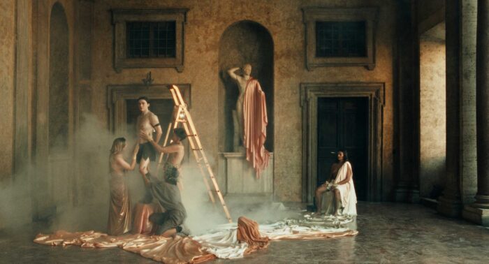 I was stricken when I learned that also the story of the foundation of Rome is based on augury. Romulus and Remus did act as augurs, and Romulus was considered a great augur throughout the course of his life. So, instead of the classical idea of learning from “the masterpieces of antiquity,” when in Rome, Madison has rather worked them through, deviating them into today, by narrative means, but also by engaging with the local queer community and scene. The (more or less professional) actors are all (more or less) known faces, and to see them in that backdrop gives me a sense of relief and release, as some sort of reclaiming the fact that our future belongs to us—but maybe I am just biased. The function of the augur was central to any undertaking in Roman society including matters of war, commerce and religion, and the “divine will” they were supposed to read would affect peace, good fortune and well-being. I must confess that I have this (more or less religious) belief that artistic practice is a form of divination, in two directions: on the one hand for the images, words or persistences coming to us, and on the other, because of a vision of all possible other pasts and futures. So with Madison’s work, also the fantasy of the present can take another course, as these augurs would never predict in the service of the empire.