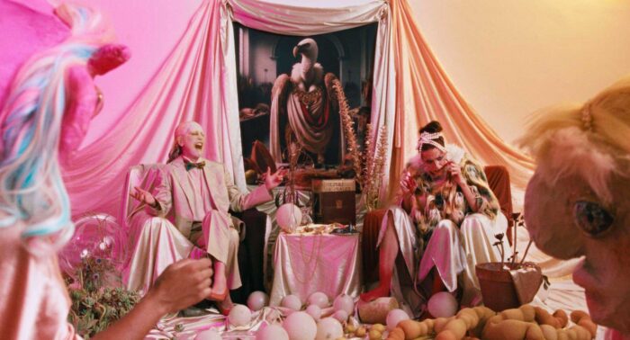 I wonder whether the Augurs and the plot came before or after the architecture and the scenography—for those of us living in the city that is such an exotic part of Rome, highly characterized by infernal tourism, romanticized by cinema, and of course, very heavily drenched with classical iconography, in between Fellini’s dolce vita and the very continental ideal that artists should come to Rome to study and copy the masterpieces of antiquity and the Renaissance. Art History with capital H (or, I would stress, HIStory). Although its allure has almost completely vanished, for me Madison’s work was capable of both adopting the iconography and inhabiting the architecture with irony and wittiness, twisting them to a certain unprecedented extent. Along that revision, it is history that has become irretrievably contemporary, and queer—the auspices that are taken feel like pink soft silk.